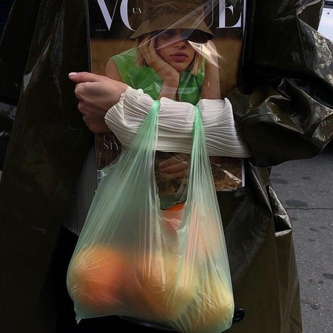 75-й кадр Девушка идет по центру города и залезает одной рукой в наш пакет