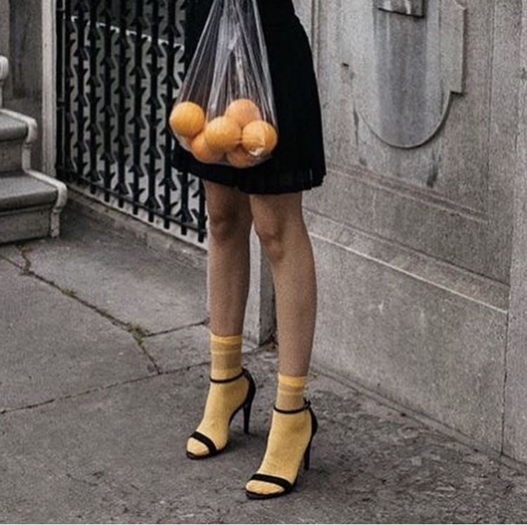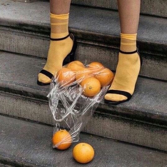 71-й кадр Снимаем девушку, с нашим пакетом, в желтеньких носочках и черных босоножках с черным платьем. Желательно, чтобы лица девушки было не видно.