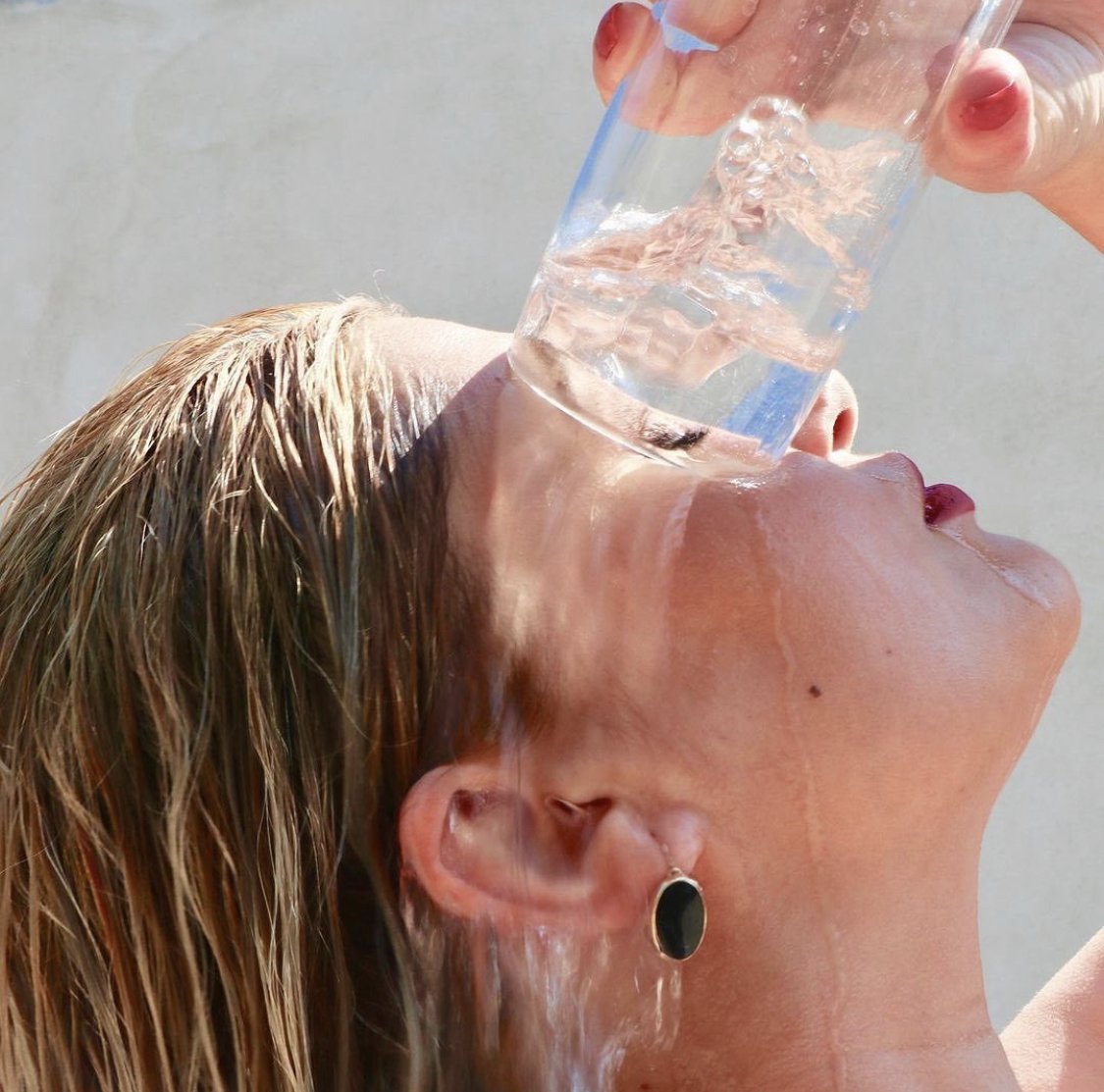 96-й кадр Девушка вливает на себя воду из колбы Можно на фоне маркета