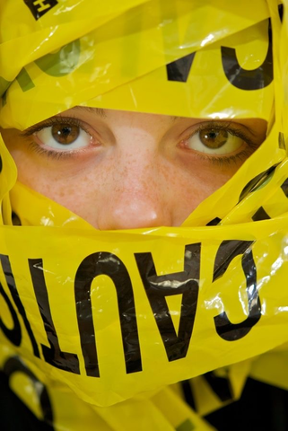 38-й кадр Вместо модели наш инкогнито человечек на складе, накрывшийся упаковочной пленкой