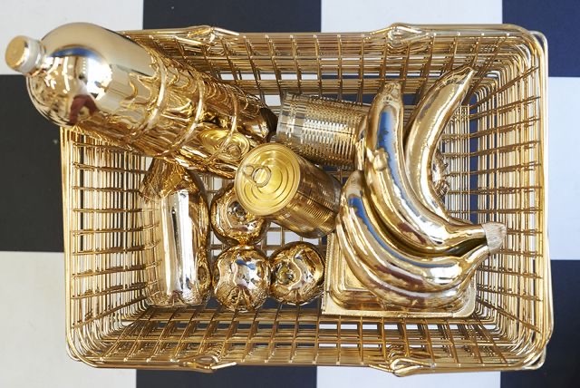 Вариант 1: сделать всю продукцию золотой, серебрянкой или желтой в корзине, можно сделать один продукт акцентным в корзине, но тогда пропадет идея с эмоджи для корзины.