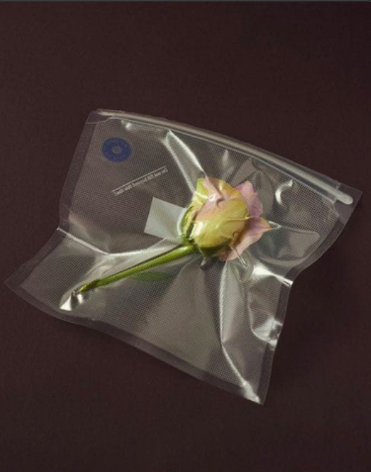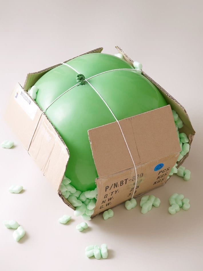3-й кадр Берем нашу коробку Вариант первый: наполняем кучей танжа, все остальное как на референсе Вариант второй: надуваем пакет, с нашим логотипом, остальное тоже все как на референсе, так же обвязываем веревкой и раскидываем пенопласт.